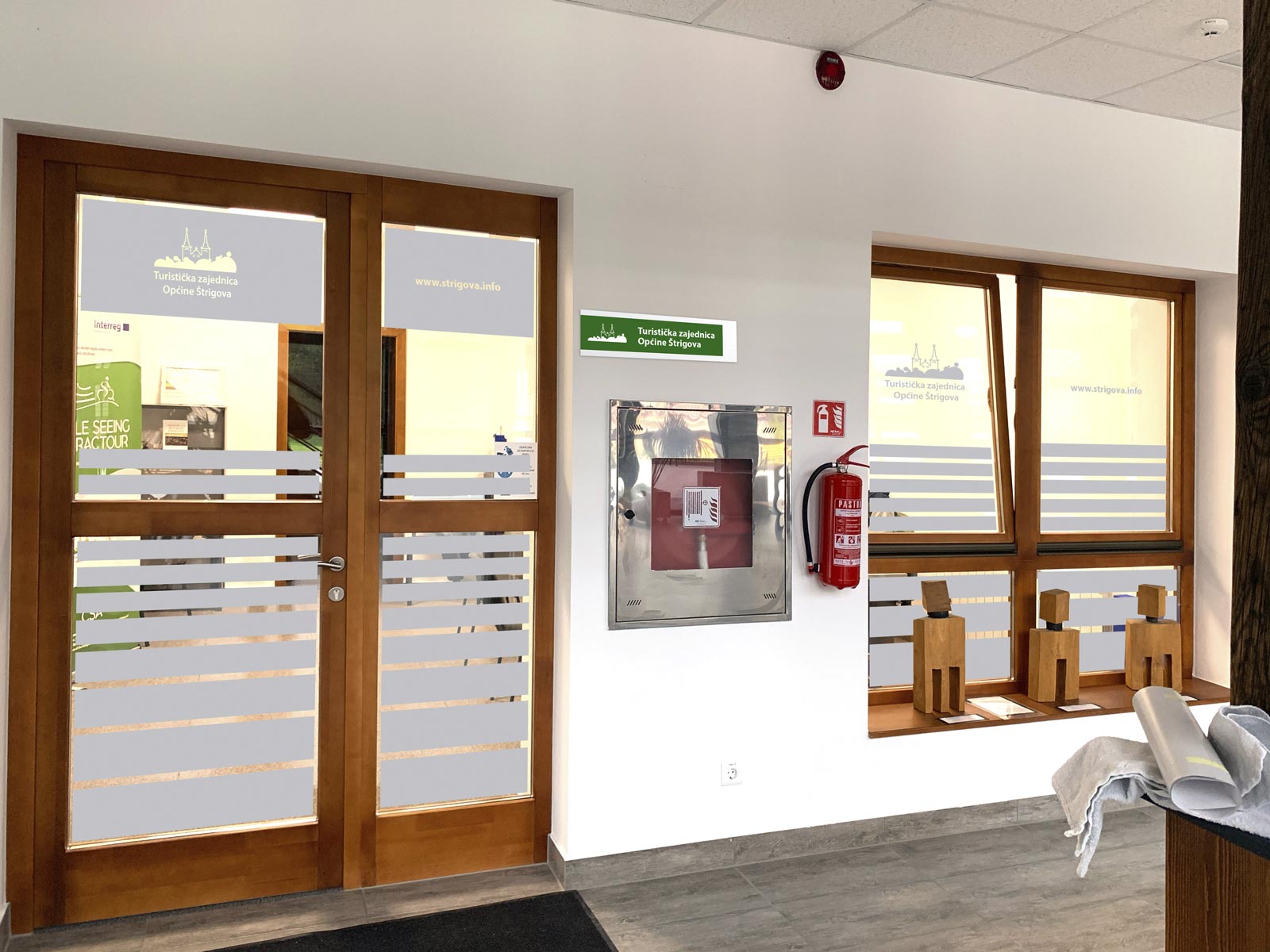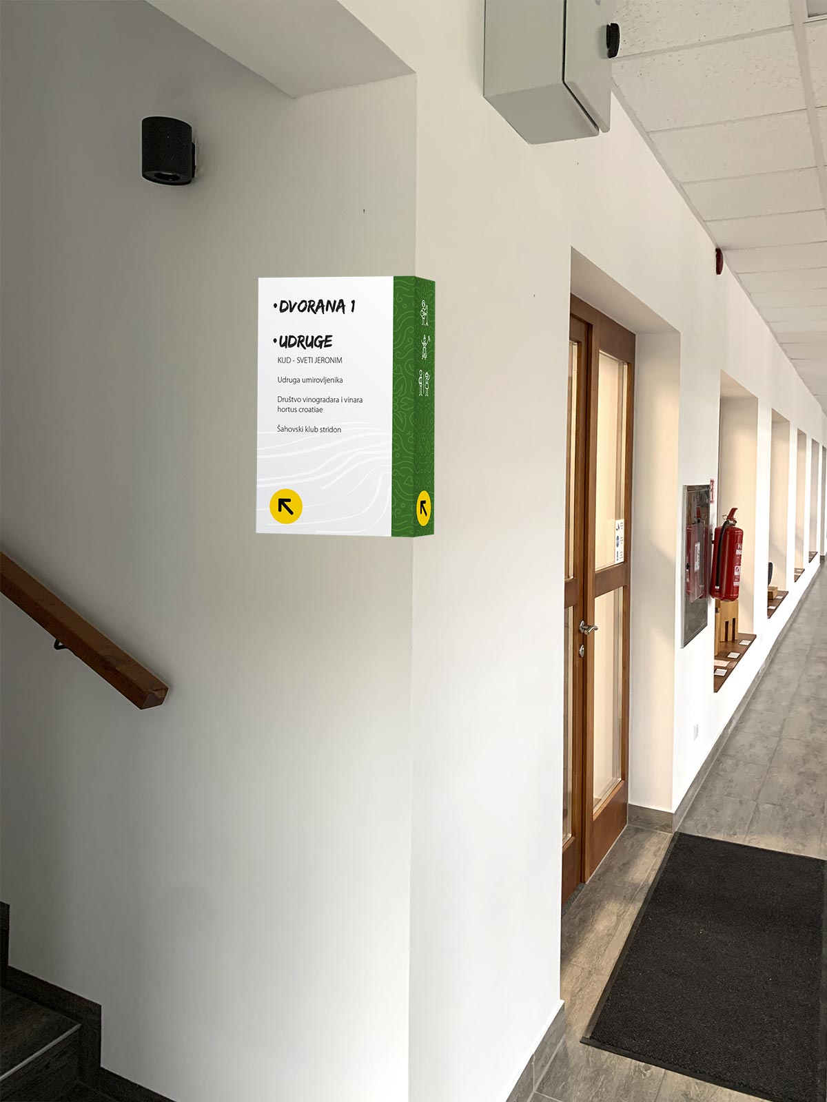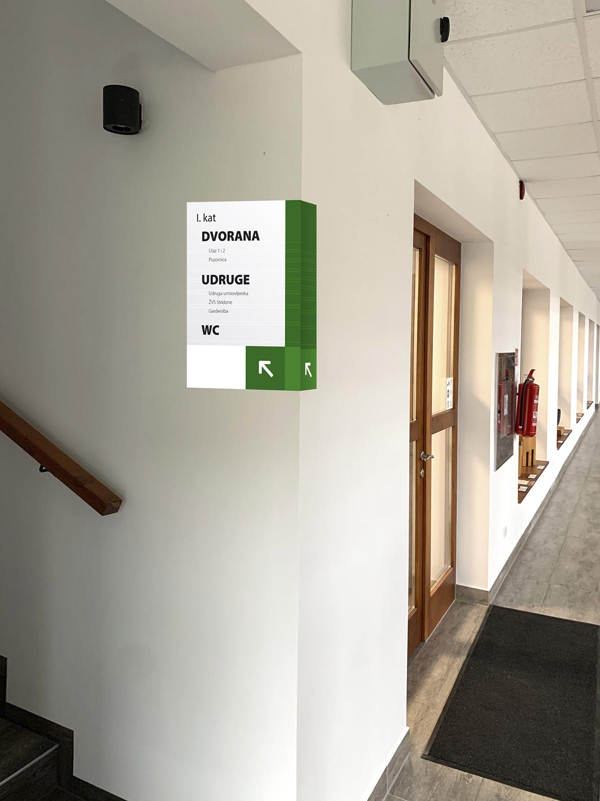 We developed the complete wayfinding and labeling system for the Culture Home Štrigova (Kulturni dom Štrigova), the central cultural venue in the municipality.