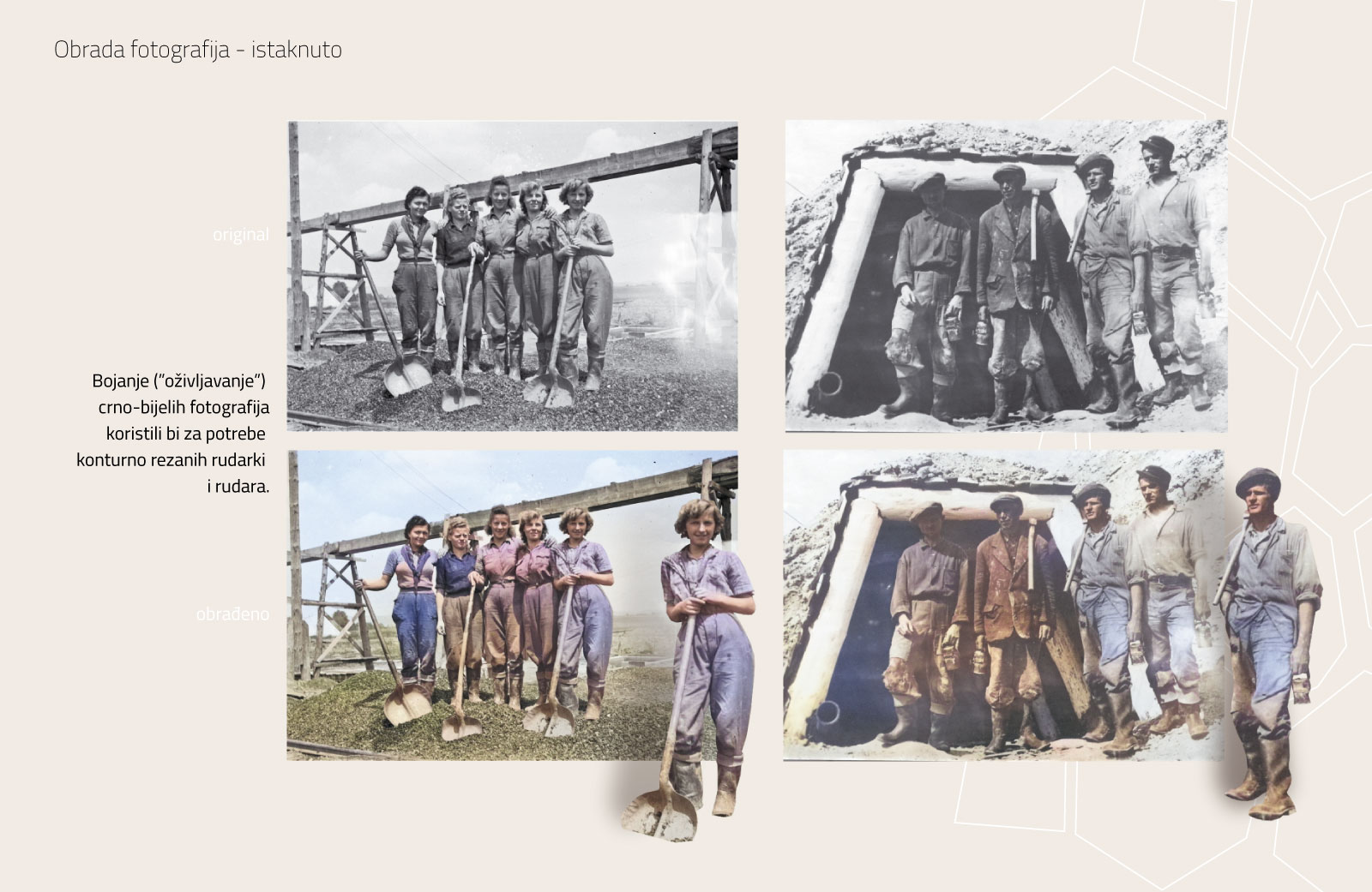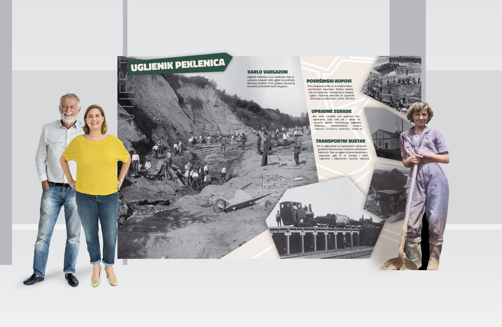 This project builds upon our earlier work for the same location, including the visual identity of the center and the monograph Beli i črni rudari, ensuring a consistent and cohesive narrative across all elements.