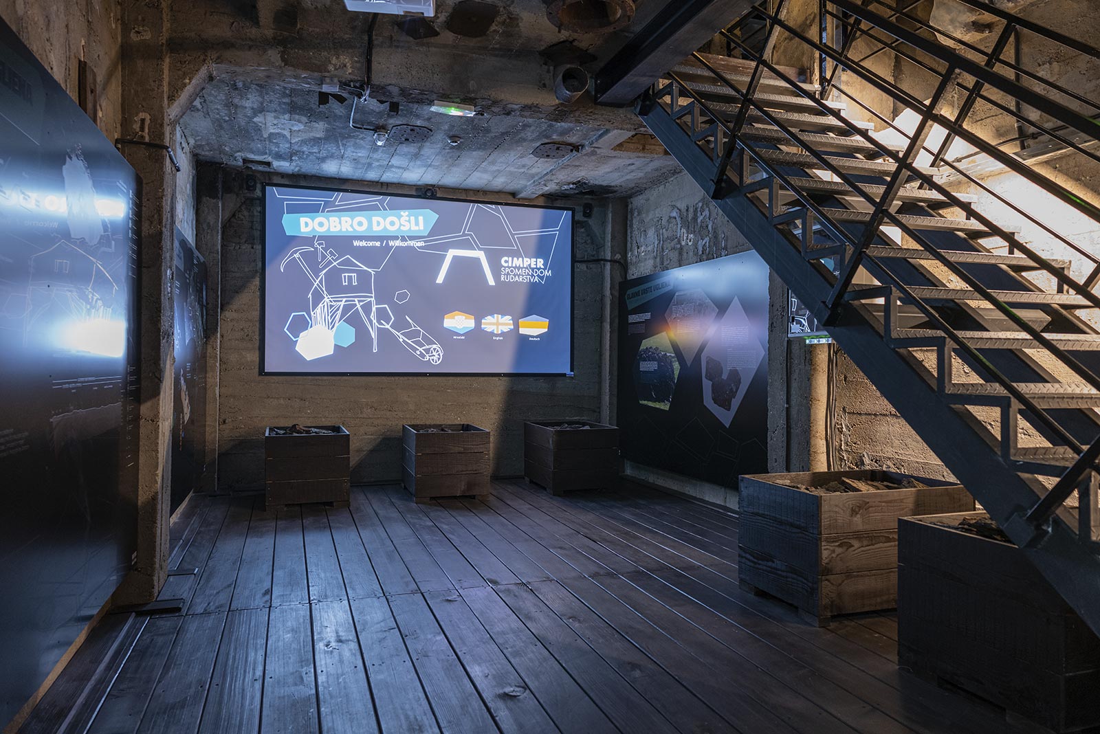 We developed the conceptual solution for the interpretation setup, multimedia design, and complete visual system for the CIMPER – Mining Memorial Center in Mursko Središće.